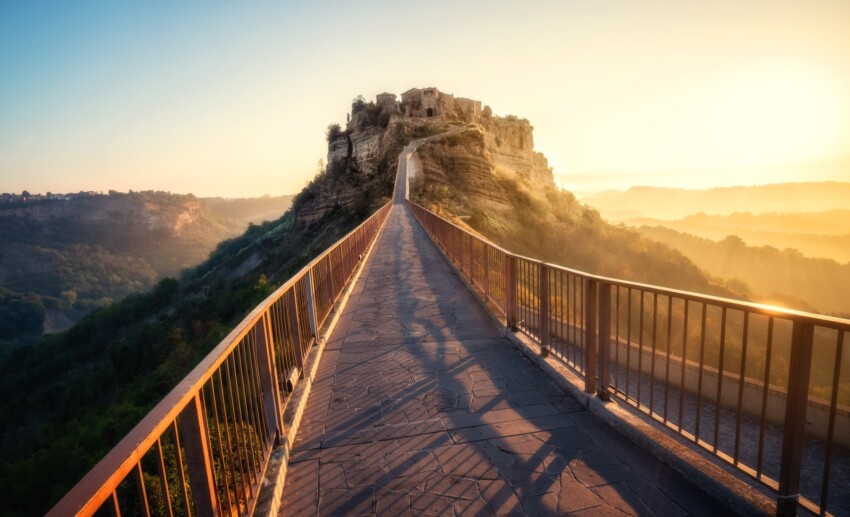 One of the most evocative day trips you can take from Rome is a visit to Civita di Bagnoregio, “the dying city”. This ancient village in Viterbo province lies roughly two hours’ drive from the capital, but the destination is well worth the journey: upon arrival, you’ll discover a settlement perched on a tufa ridge, accessible only via a pedestrian footbridge and set within truly marvellous natural surroundings that, whilst distinctly different, recall the Mont Saint-Michel abbey in northern France.
