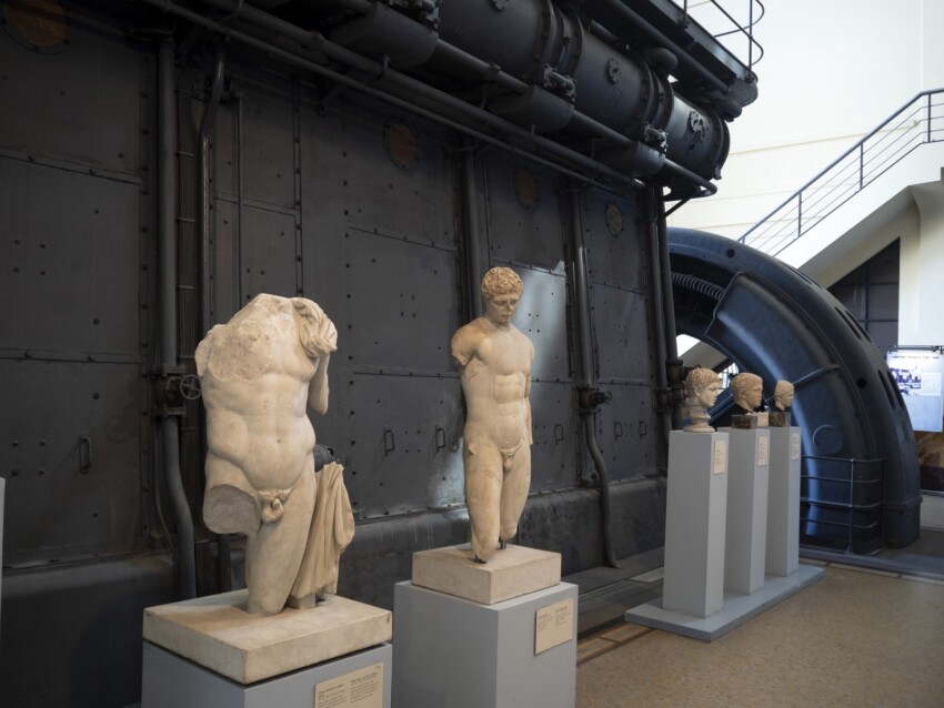 The plant’s halls display approximately 400 ancient sculptures, mosaics and archaeological finds narrating Rome’s history from the Republic through the Imperial age. The collection includes masterpieces such as the statue of Muse Polimnia, the Seated Girl and the sculptural group from the Gardens of Sallust. The display ingeniously exploits the industrial spaces: sculptures are positioned beside diesel generators and iron columns.