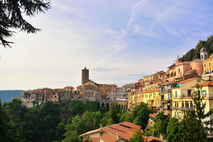 Castel Gandolfo est sans doute le village le plus célèbre des Châteaux Romains, connu dans le monde entier comme siège de la résidence d’été des Papes. Le bourg est bâti sur un éperon de roche volcanique qui domine le Lac d’Albano, un lac d’origine volcanique aux eaux d’un bleu intense, formé à l’intérieur d’un ancien cratère. La position est spectaculaire : depuis la vue sur la place principale, le regard s’étend sur le lac et, par beau temps, jusqu’à la mer.