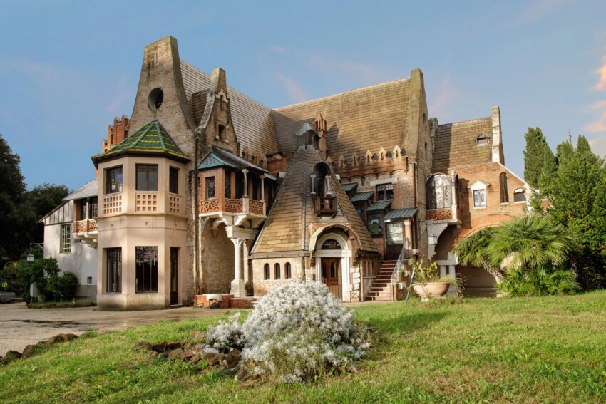 L’édifice présente une architecture éclectique qui mêle des éléments médiévaux, gothiques et Art Nouveau : petites tours, loggias, portiques en bois et décors en céramique créent une atmosphère de chalet féerique. L’intérieur conserve des meubles d’époque, des stucs polychromes et des pavements en majolique qui témoignent du goût raffiné de l’époque.