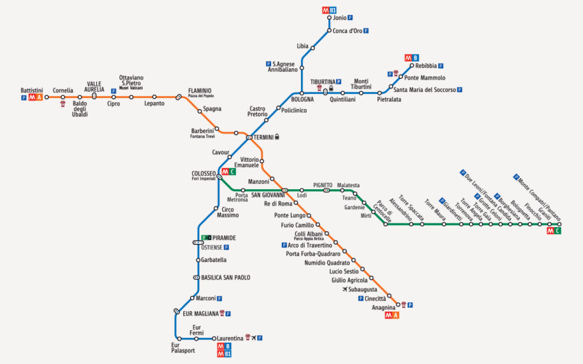 Rome est une ville difficile à traverser en surface en raison du trafic intense et des nombreuses zones à circulation limitée. Le métro représente donc une solution stratégique, notamment pour accéder au Colosseum, aux Musées du Vatican ou à la gare Termini en temps certain et sans surprises. Cependant, le réseau présente encore des lacunes importantes dues aux difficultés historiques des fouilles dans une ville qui renferme des trésors archéologiques à chaque mètre de profondeur.